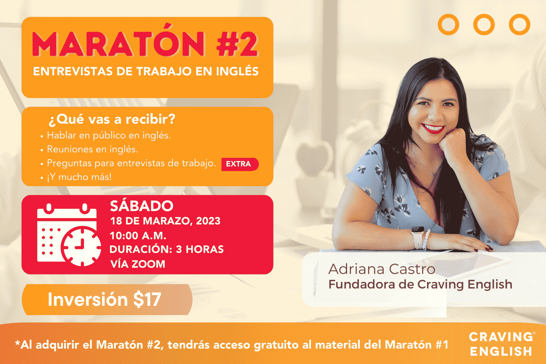El próximo 18 de marzo a las 10 a.m., hora de Costa Rica, estaremos preparándote aún más para que consigas ese trabajo de tus sueños, escribas correos electrónicos en inglés sin ninguna dificultad y dirijas reuniones a la perfección.
